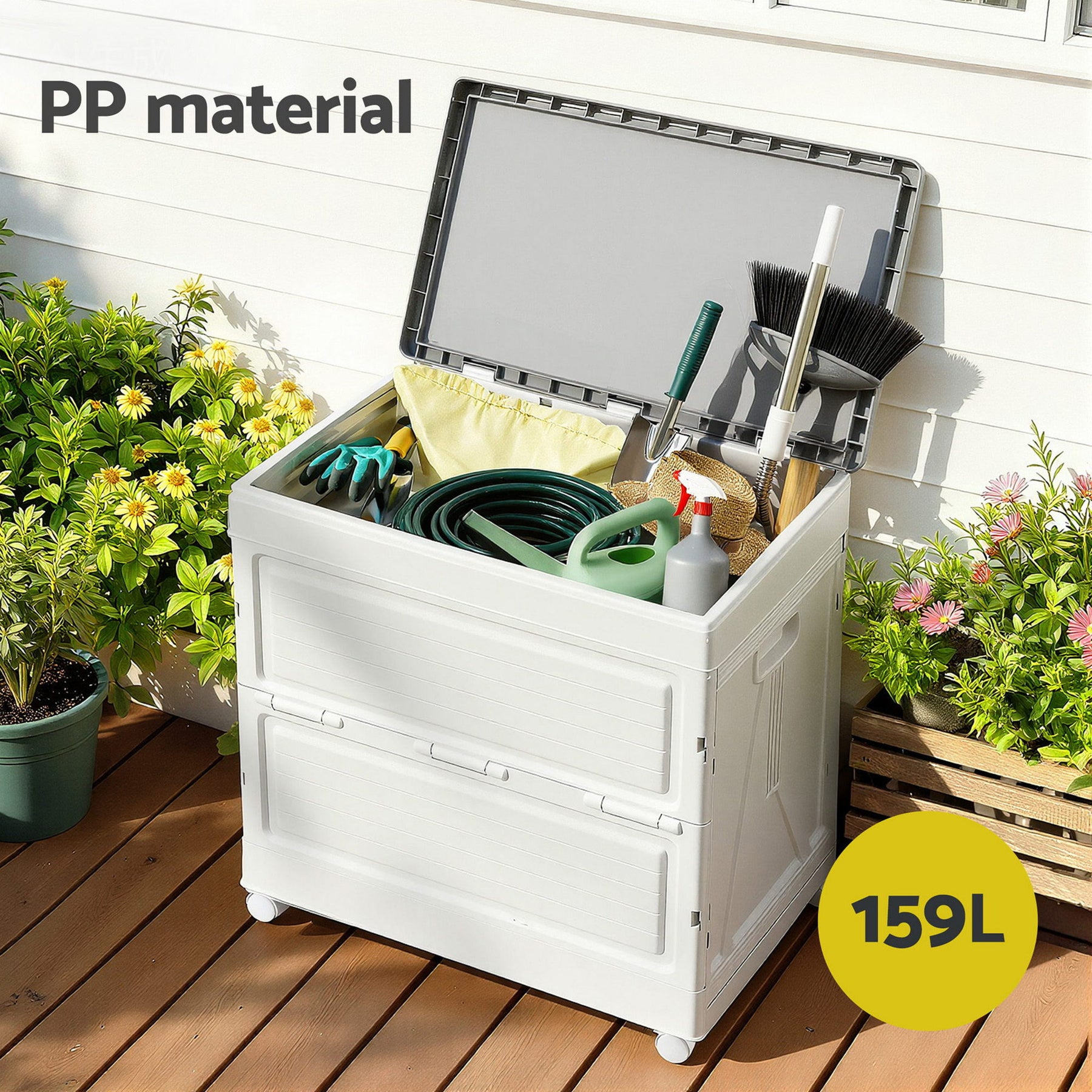 Easily declutter your garden, garage, and home with the Gardeon All-Weather Storage Box! Crafted from PP materials, keeping your tools, cushions, and toys safe. Featuring four 360° all-terrain wheels, it glides effortlessly over grass or gravel, even when fully loaded. Setup is a breeze—assemble in minutes without tools, and when not in use, it folds completely flat for compact storage. Versatile design perfect for indoor and outdoor organization, Gardeon helps you reclaim your space with ease and style.Note:Please do not leave it in direct sunlight for extended periods.