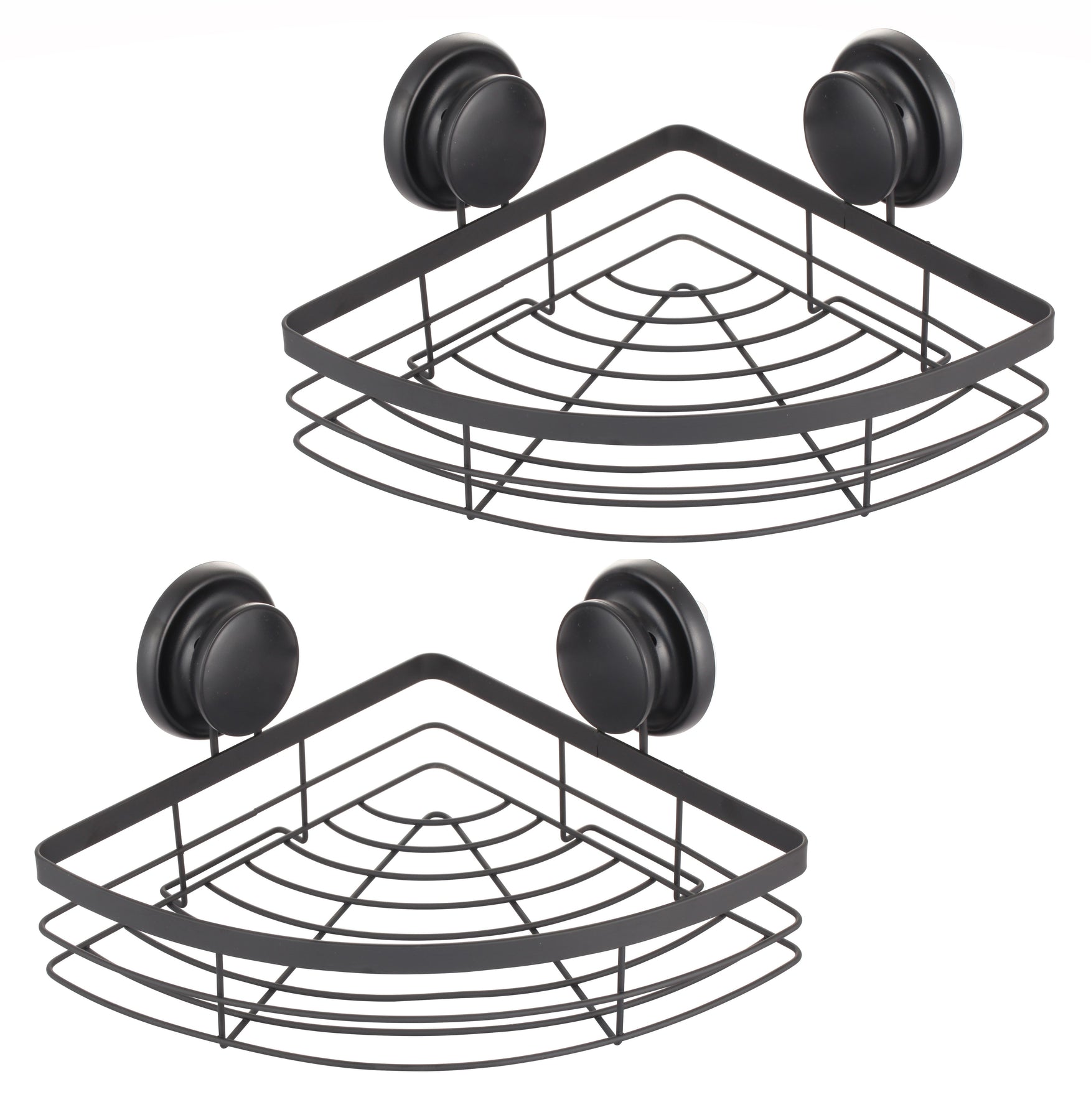 2 Pack Round Corner Shower Caddy Shelf Basket Rack with Premium Vacuum Suction Cup No-Drilling for Bathroom and Kitchen