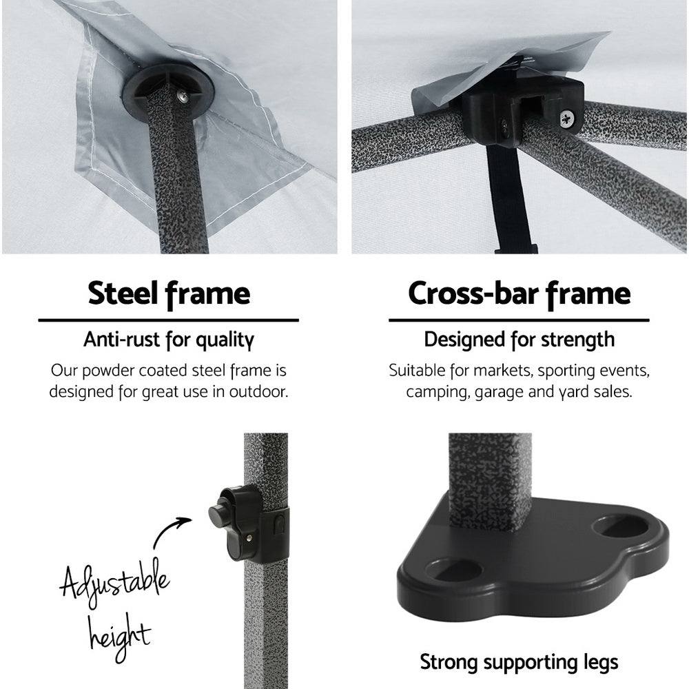 Featuring high density, long lasting PU coating oxford fabric with effective UV and water repellent treatments, this INSTAHUT 3X3 Pop Up Gazebo provides a lovely ground and canopy coverage of 300 x 300cm. It is perfect for all your upcoming outdoor activities, as a sunshade station as well as a shelter for unexpected rains.
