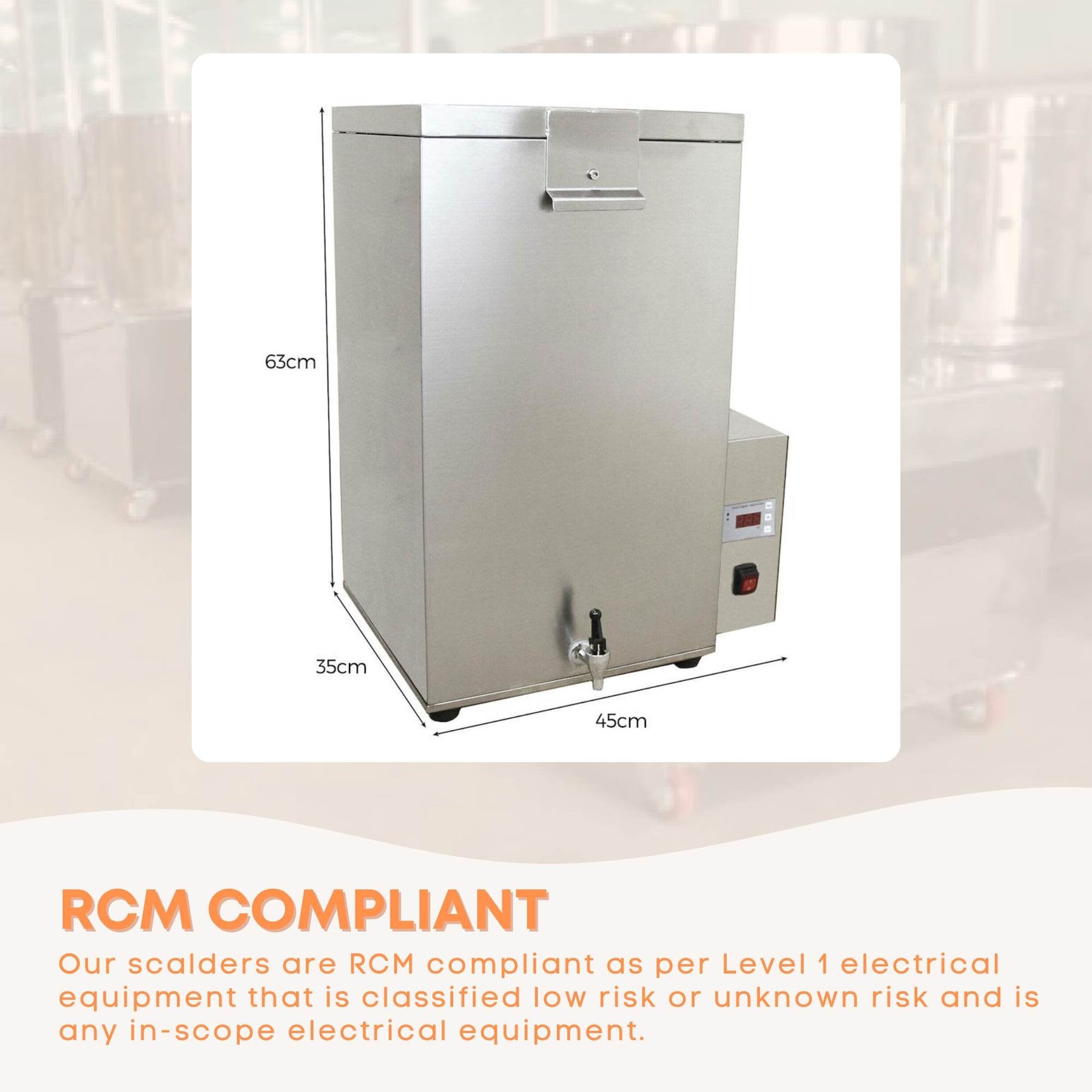 Our scalders are RCM compliant as per Level 1 electrical equipment that is classified low risk or unknown risk and is any in-scope electrical equipment.