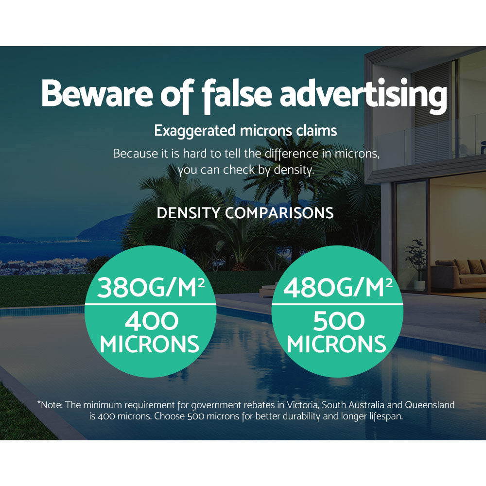 Made of premium low density polyethylene 500 Micron and isothermal design, this solar pool cover is extremely durable and can efficiently and effectively distributing the heat to the water. It allows sun heat to penetrate to the pool; increasing the temperature in the water as well as can significantly reducing water evaporation.