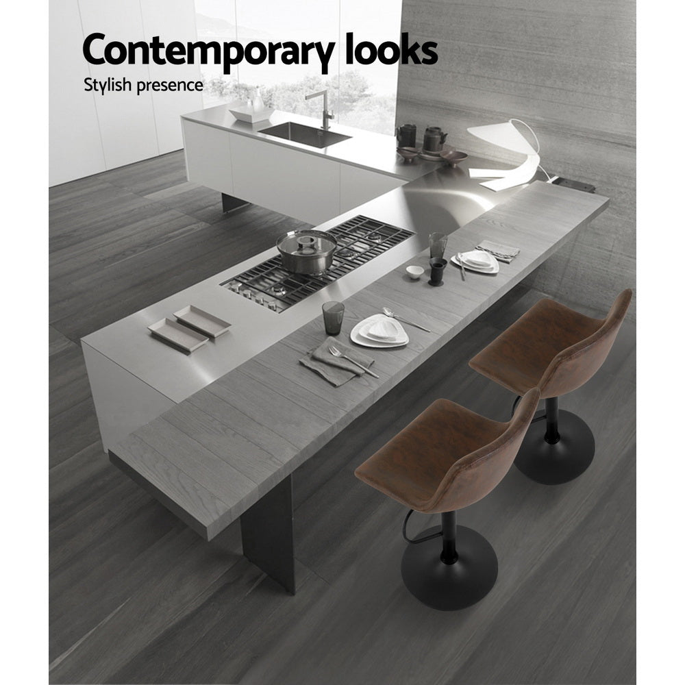 Relax and dine in style with our Artiss Bar Stools. With its classic design and contemporary good looks, the bar stool is a must for every house proud person. Upholstered in faux leather, the bar stool also features an extra thick foam padded seat for ultimate comfort. The semi-circular footrest ensures relaxed sitting while the omni-directional seat makes for easy turn to where you want to look. Better still, the height can be easily adjusted with the SGS-tested gas lift and the large base ensures stability at all times. Not least, a floor protector under the base helps to keep your pristine floor scratch-free at all times.