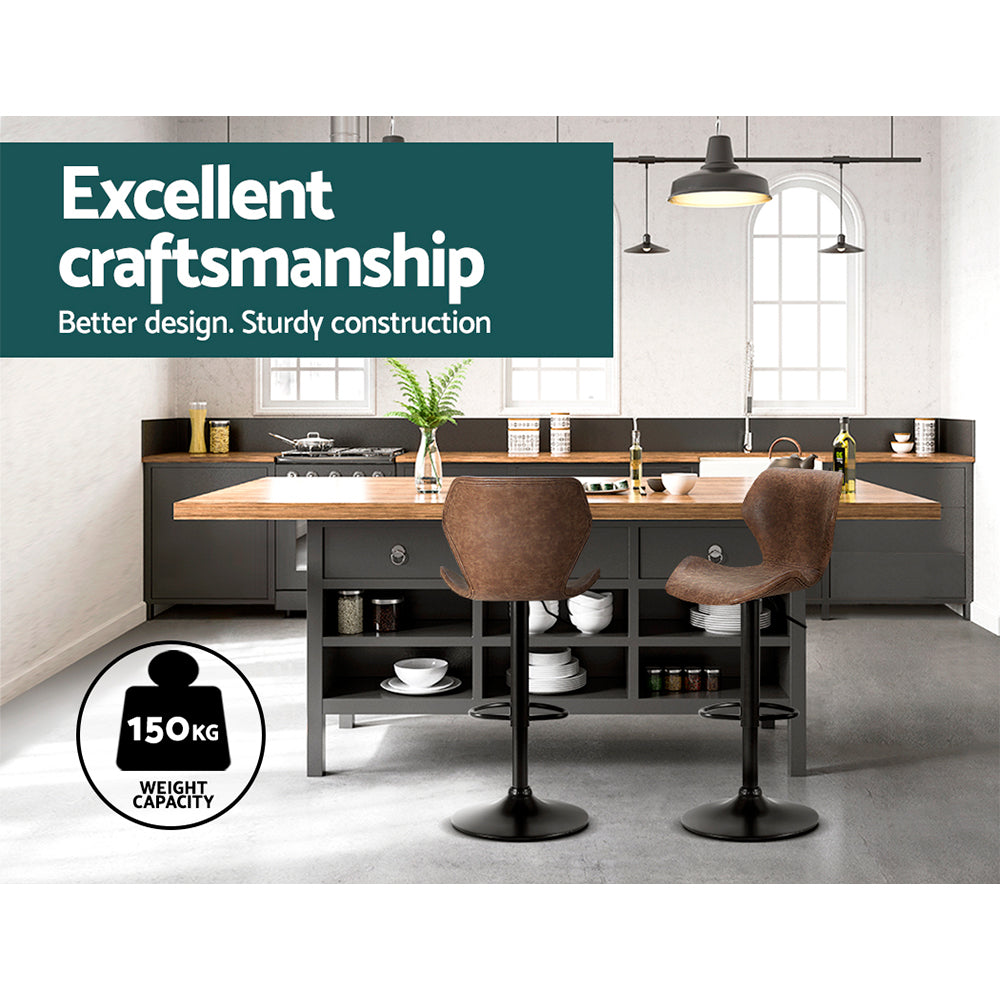 Not an ordinary piece of furniture but stands out in every aspect, whether it's craftsmanship, style, upholstery, comfort, or quality that speaks for itself. If you're after achieving an elegant vintage yet contemporary feel in your space, our Artiss' Frawley bar stools with an elegant back and seat design are just perfect. They're great for catchups over coffee with friends, a jam session with the band, or daily living. Our bar stools are uniquely designed that will make you want them in your space. You can style our Frawley bar stools anywhere, from living rooms to kitchen and the bar section, they will effortlessly fuse in any décor and lend an elegant vintage feel to your space. These bar stools can even be used as an impromptu seat when you need extra sitting space. Featuring a unique design with beautiful PU vintage leather upholstery, our bar stools have thick foam soft padded seats, sturdy powder-coated pedestal base, adjustable height with SGS-tested gas lift, and floor protector for ultimate stability and scratch-free floors. Their solid structure ensures longlasting use and superb durability. They also feature 360˚ rotatable seat so you can face any direction for ease of conversing with guests and family. Our Frawley bar stools make a timeless piece of furniture, and with two colour options, you can choose that best complements your space and suits your taste. Artiss' Frawley bar stools would make a gorgeous addition to your space. Shop them today!