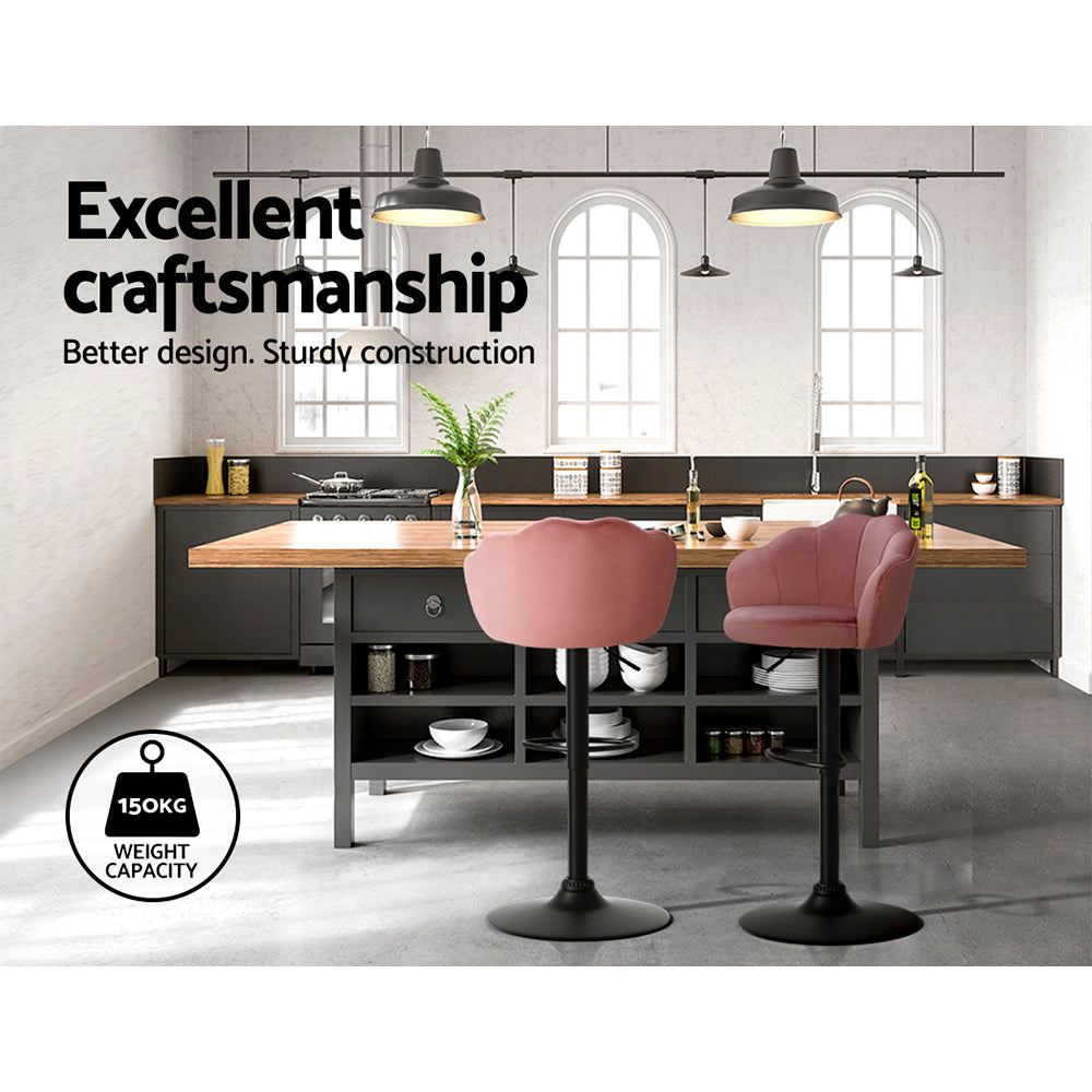 2x Bar Stools Gas Lift Velvet Pink