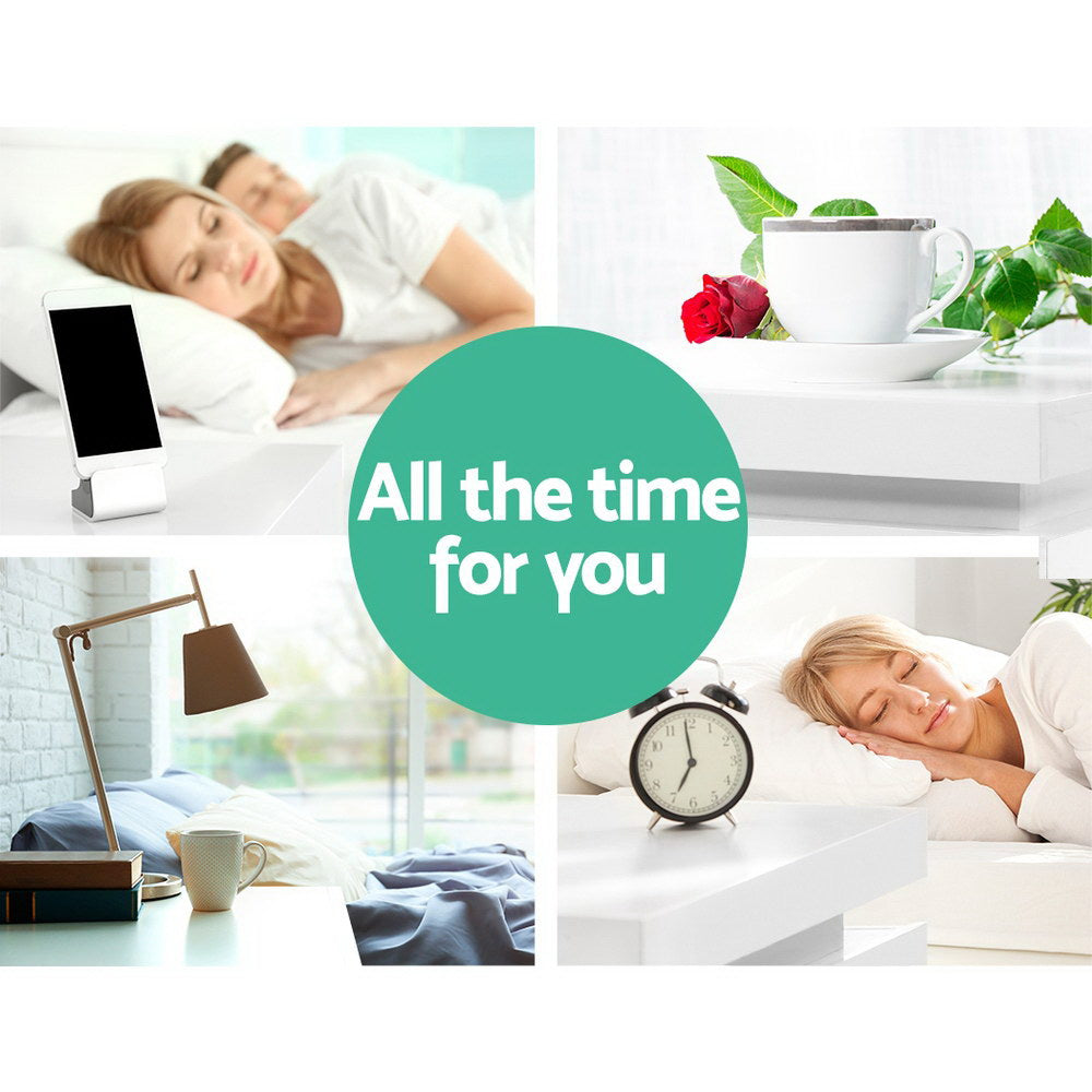 Tired of fumbling in the dark for a light switch in the middle of the night? With our Artiss LED Bedside Table, your problems are solved. The bedside table comes with built-in LED lighting that can be customised into 16 different colours to suit your preference. Not only will it create a beautiful ambience, it will also save you from buying extra bedside lamps or nightlights. Three deep drawers sliding on smooth anti-rust runners provide ample storage space. There is also a top storage compartment that opens with a lift-up lid like a treasure trunk, which you can fittingly fill with your own personal treasures. Better still, the handle-free design gives it a modern vibe that stands out from the mundane. Constructed from quality particle board and MDF with melamine finish and high-gloss UV front, the bedside table is durable and easy to maintain. And it will be the perfect addition to your modern bedroom with its contemporary and linear design. Or you can keep one in the living room to wow all your houseguests.