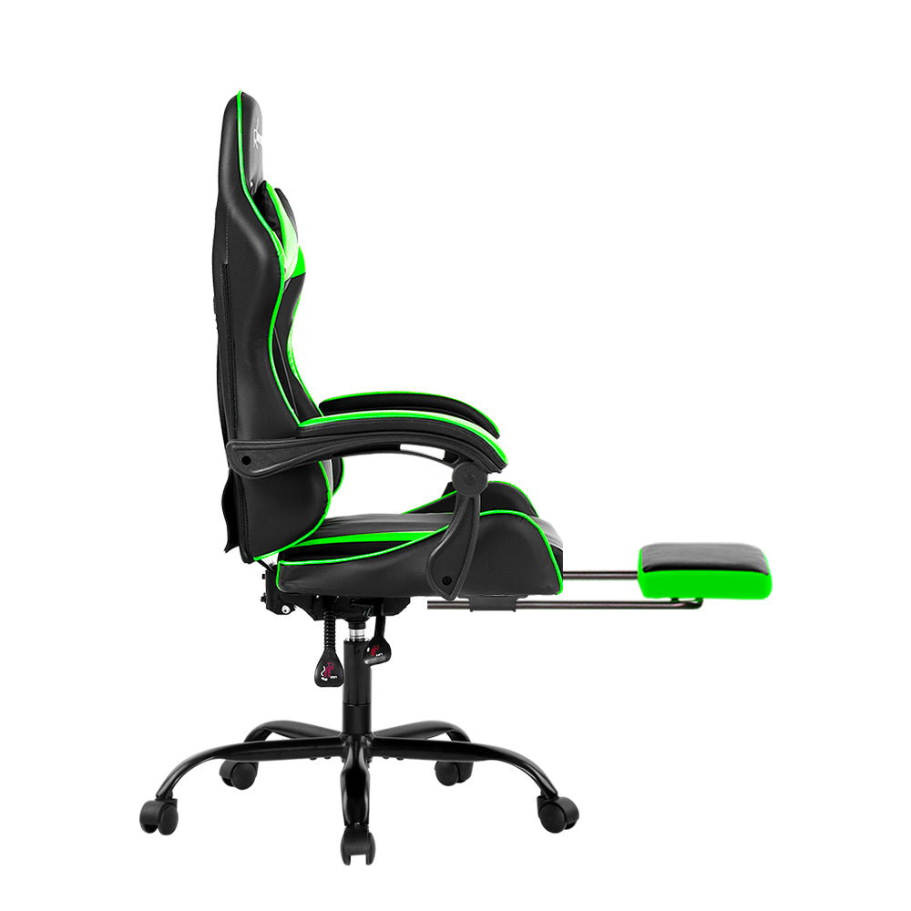 With its distinct and comfortable design, the Marvel Gaming Chair is perfect for the professional gamer or executive. Upholstered in premium faux leather, the chair seat is richly padded and comfortable thanks to its high density cold-moulded foam, yet firm in the right places for adequate support. Taking its design cues from a racing car seat, the high back body wrap chair also features two holes near the headrest for ample ventilation. It also comes with a detachable head and back cushions for extra support when you need it. The chair features a gas lift for 360 degrees rotation and height adjustment, and the cool chrome base has five castor wheels, ensuring you can cruise anywhere without any jerking. Best of all, the chair can be reclined to 160 degrees and locked in position for a quick nap, made especially comfortable with the optional padded footrest. Whatever drives you, our gaming chair will give you the upmost comfort and support.
