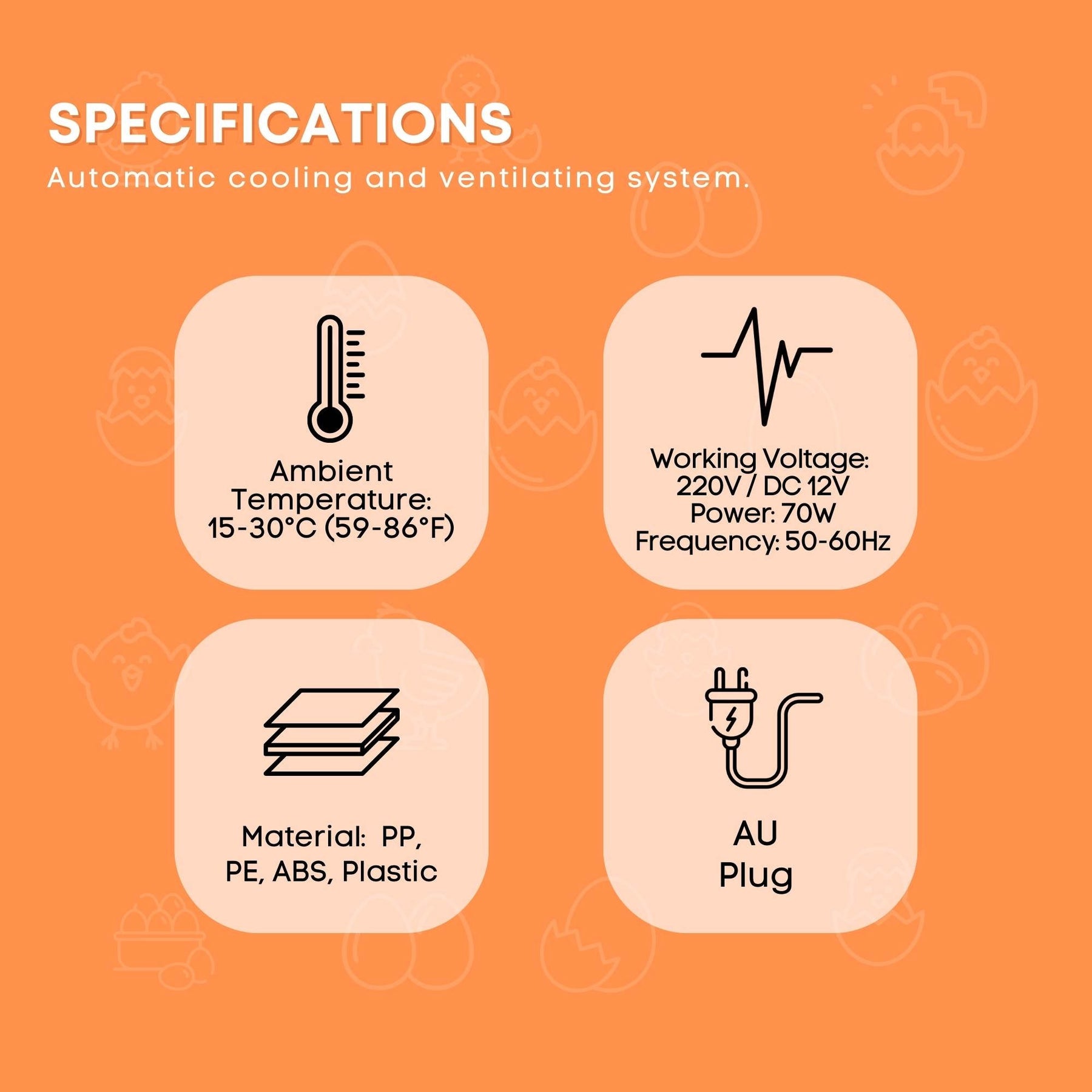 Equipped with a reliable dual power supply system, this incubator ensures uninterrupted operation by seamlessly switching to a 12V battery (not included) during power outages. With the additional 18-egg tray, you can also incubate small bird eggs, making it perfect for hobbyists and educational use.