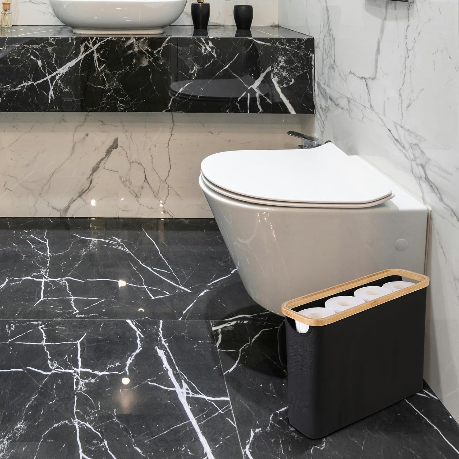 CARLA HOME 2 pack Toilet Paper Storage Basket Holds Up to 12 Rolls with Bamboo Lid and Handle for RV Closet (Black)