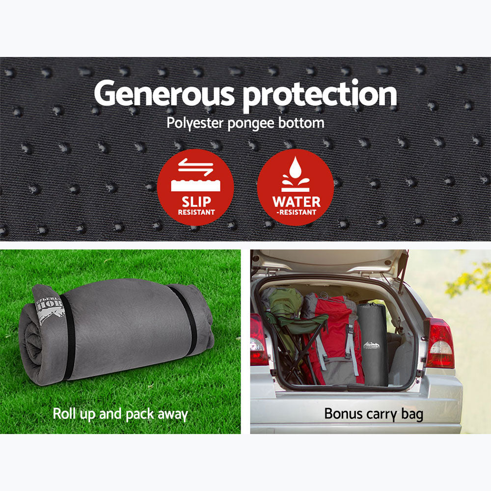 As the name says it all, the water-resistant Mat self-inflates through built-in valves in just 60 seconds, presenting you with a smooth suede sleeping surface amidst all types of terrain almost instantly. Made from high density 10cm thick polyurethane foam, the Mat is wrapped with a faux suede surface top and anti-slip polyester pongee bottom. That way, you lie on a smooth and comfortable surface with a mat that does not slip or move with your every turn while sleeping or shifting around.