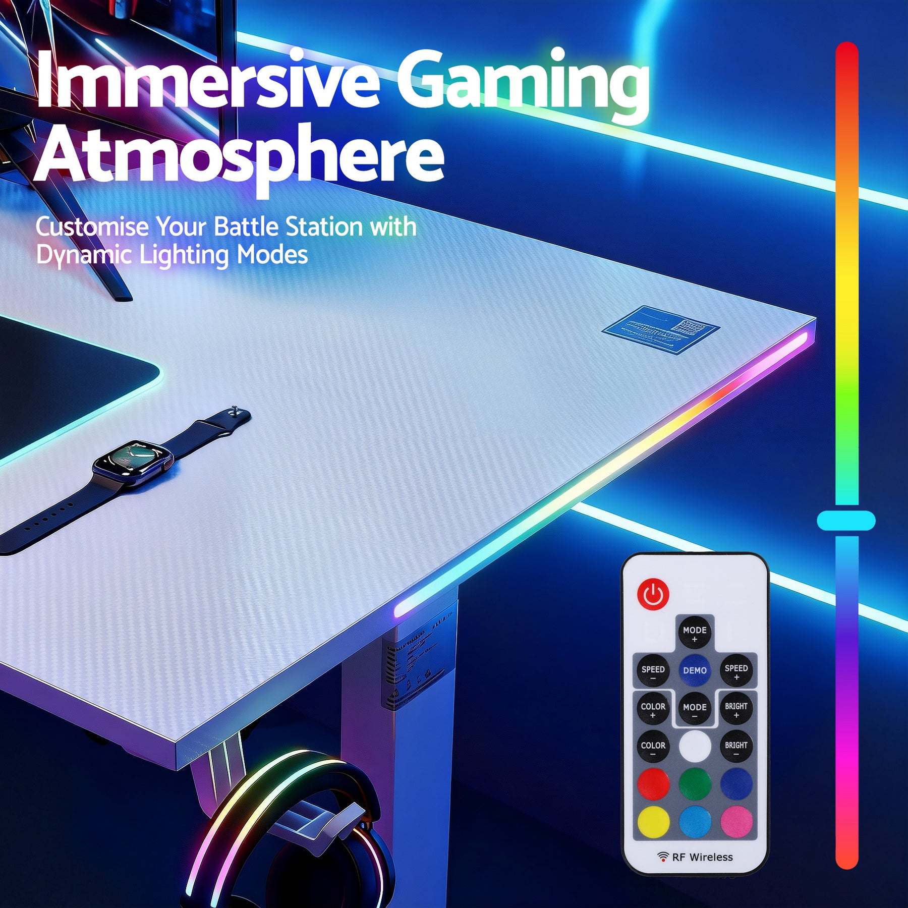 Designed for modern gamers, this Artiss gaming standing desk features electric height adjustment with memory control, RGB LED lighting, and a durable MDF desktop. Switch easily between sitting and standing while keeping cables organised for a clean gaming setup.
