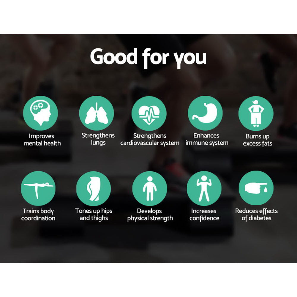 Easily increase the height of your aerobic step with our Everfit step risers. Where each step riser will increase the height of your aerobic by 5cm, you can now perform all sorts of aerobic routines and have a professional workout even when you're at home.Improve your cardiovascular fitness, train your body coordination, burn fat and tone up your hips and thighs! Save money and time from travelling to the local gym. It’s that easy!