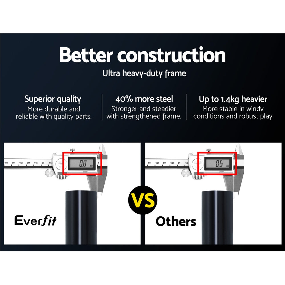 If you love the beautiful game, you will surely love the Everfit Portable Soccer Rebounder Net. Easy to set up, the portable goal comes with a sturdy powder-coated steel frame and a high-density PE net to practice your soccer skills. Passing, receiving, heading, trapping, volleys and shootings are all intermixed with reactive skills on dealing with unpredictable ball rebounds. From goalkeeper to full back to forward, every soccer position can be rigorously trained and tested in real game-like conditions. The frame itself is made with 40% more steel for extra durability. Plus, the four ground stakes ensure that the entire ensemble stays firmly in place with robust play. Not least, you can carry the goal easily to any location for a game with the bonus carry bag.