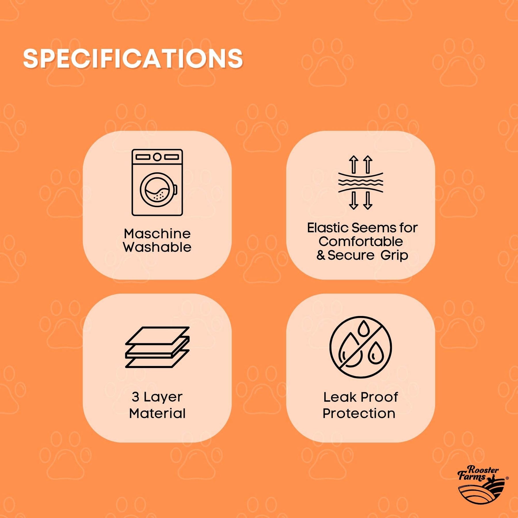Rooster Farms X-Small Female Dog Diapers 3-Pk Washable Reusable Nappies Hook + Loop Fit will keep your pup comfortable and your home clean! Soft, secure, and eco-friendly, these reusable nappies are perfect for heat, periods, incontinence, or puppy training.