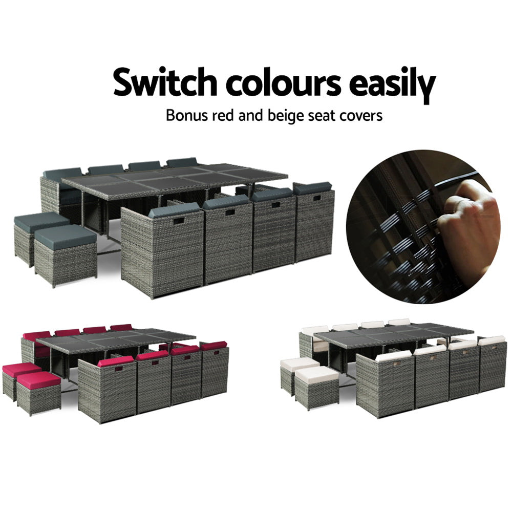 Outdoor Dining Set 13 Piece Wicker Table Chairs Setting Grey