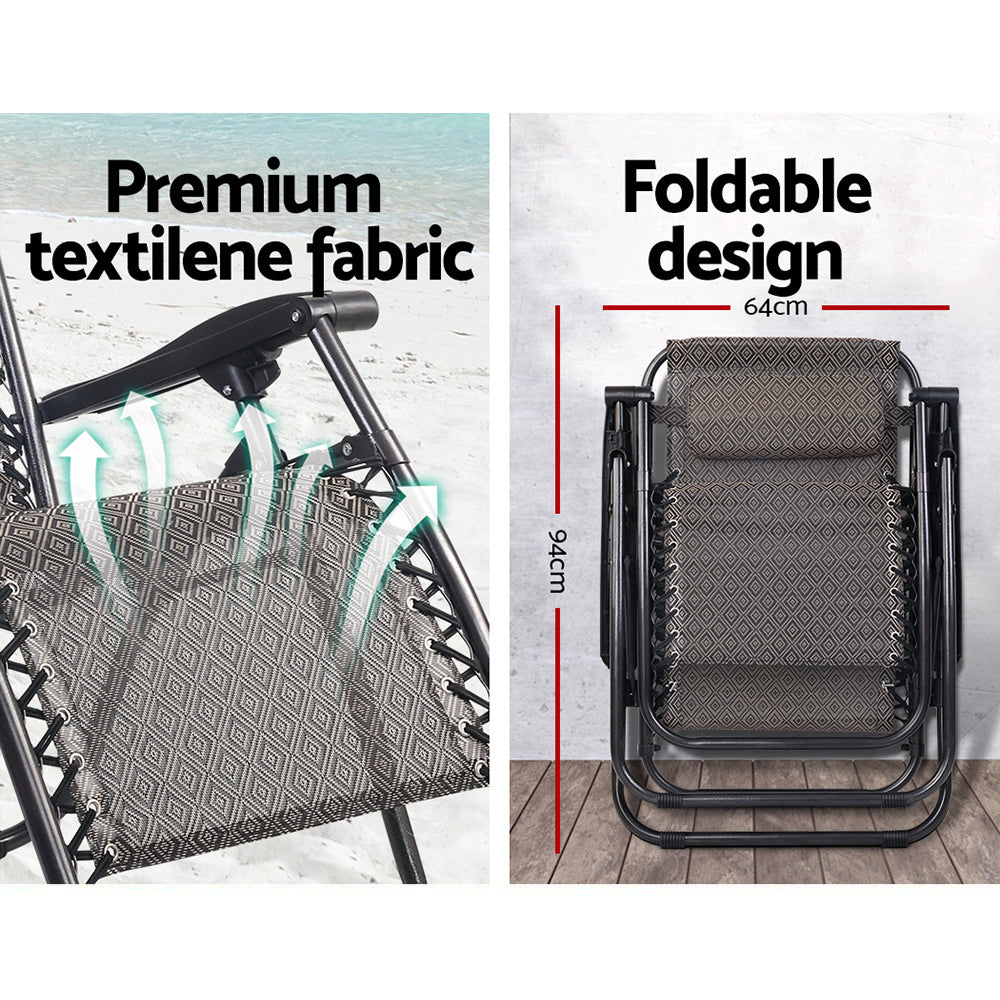 2PC Zero Gravity Chair Folding Outdoor Recliner Adjustable Sun Lounge Camping Beige