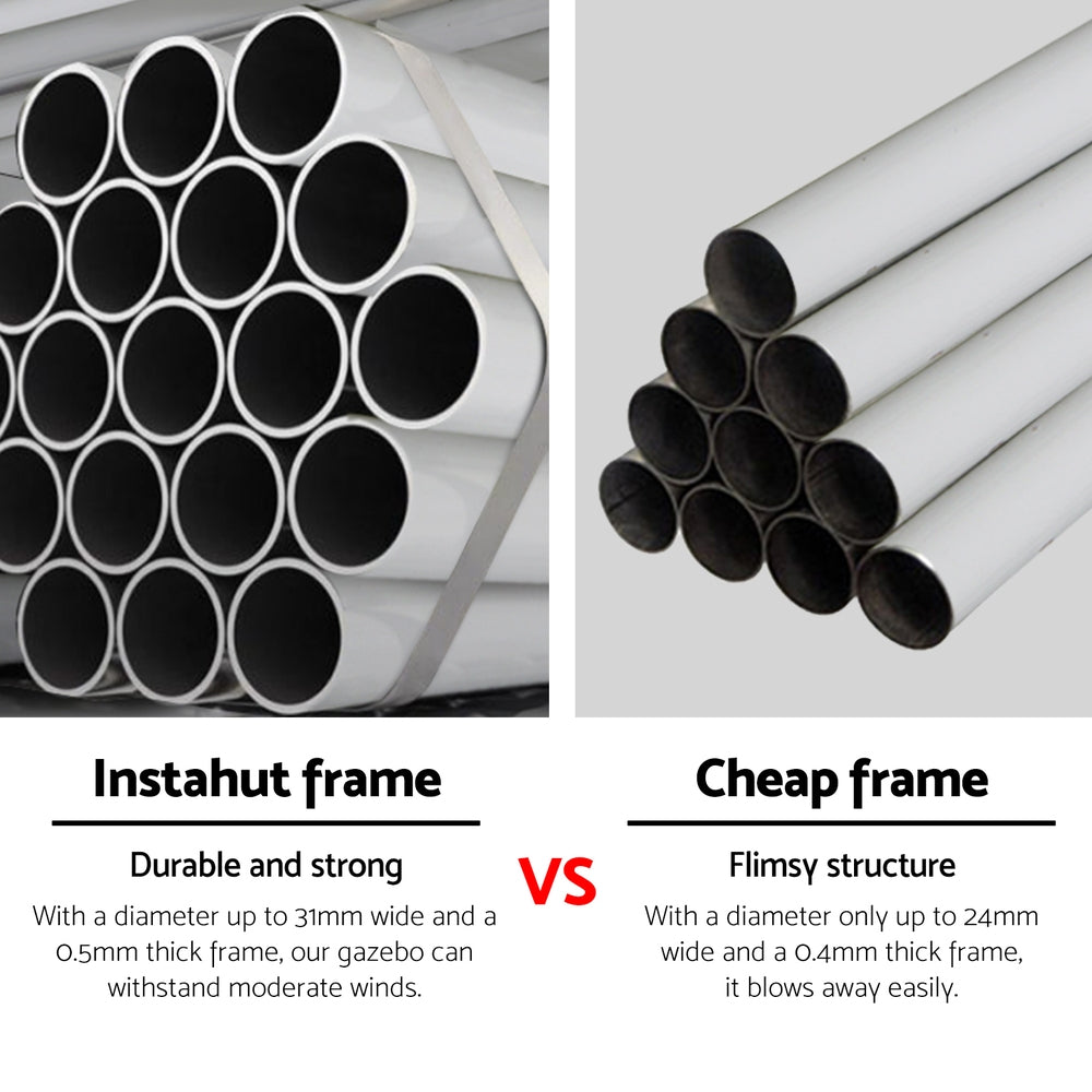 It's your big day and everything needs to be perfect, including the comfort of your guests. That's where Instahut comes to the rescue. The ideal solution for instant cover outdoors, our 300cm by 600cm wedding gazebo will ensure your guests are protected come rain or shine. Made from strong powder-coated metal tubing and covered with a 100PE UV and water-resistant canopy, the gazebo is built to last in a variety of weather conditions. With its quick and convenient hook & loop attachments, you can set the gazebo up in minutes. The bonus carry bag allows you to store it away in your car boot, van, trailer, garage or shed until just the right moment. It also comes with bonus ropes and pegs so you can rest assured your canopy will last throughout the event. It's not just suitable for weddings – the gazebo is suitable for markets, sporting events, camping, yard sales, school events and trade shows. Enjoy the outdoors to the fullest with an Instahut Wedding Gazebo.