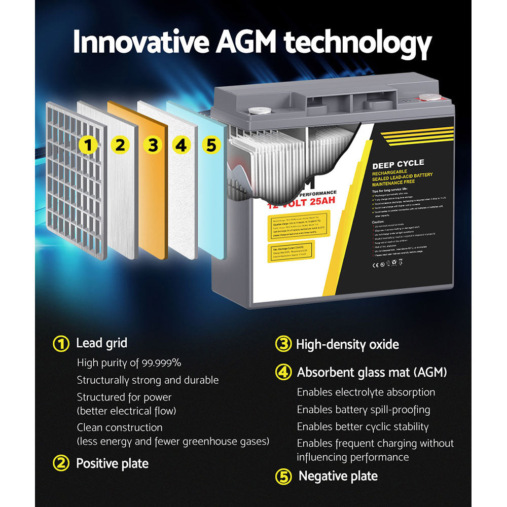 AGM Deep Cycle Battery 12V 25Ah Box Portable Solar Caravan Camping