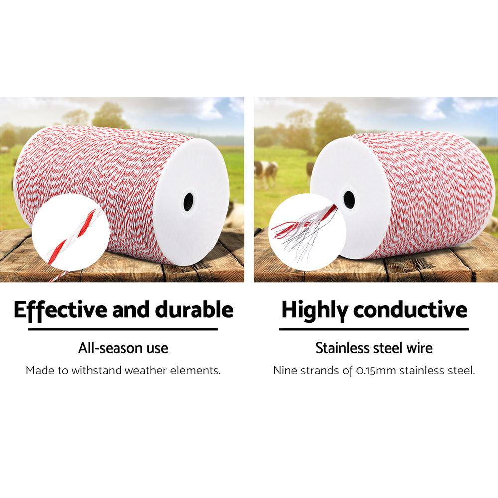 Electric fences are designed to keep pets and livestock contained and polywire helps to improve its visibility, keeping your pets and livestock away from it. The wire is constructed of 9 stainless steel wires, each measuring 0.15mm. As polywire is thinner than polytape, it is considered to be more resistant to wind. With the use of red and white, it highly increases the visibility, preventing your livestock to make accidental contact. Fulfilling your needs for a reliable electric fencing, be assured that your animals will be kept where they belong.