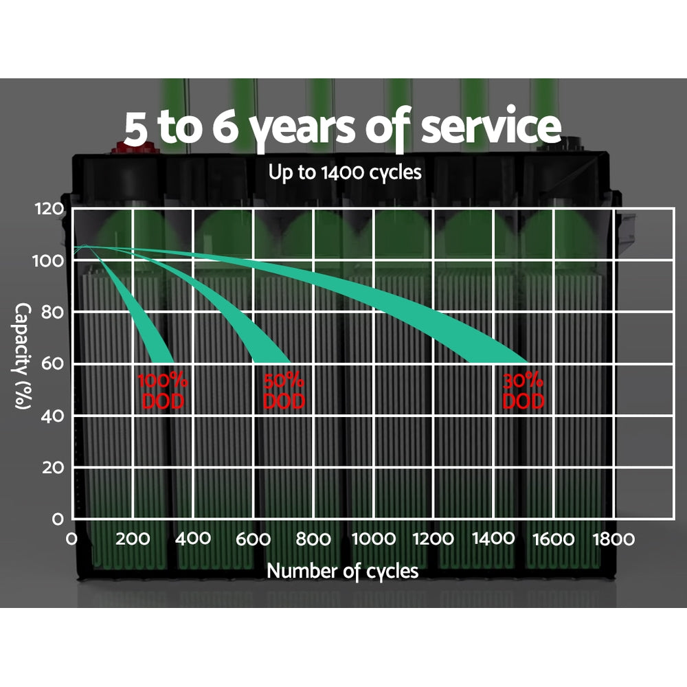 Maximum cycle lIfe: 1400 cycles (@30% DOD)