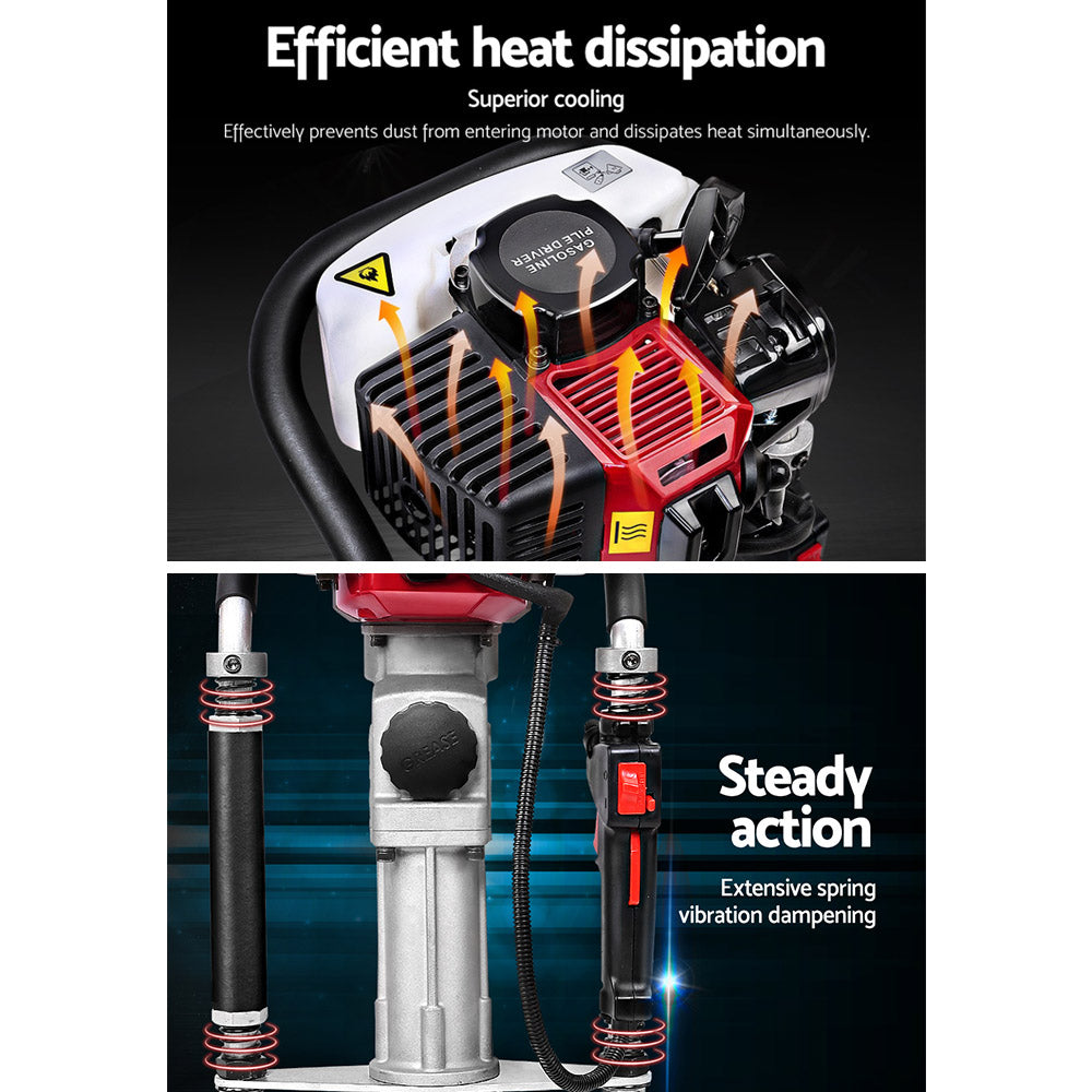 Petrol Post Driver 2-Stroke 32.7CC Rammer Pile Star Picket Fence Hole Red