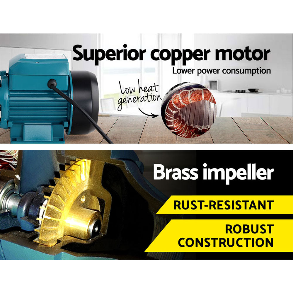 This pump is ideal for pool pumping, increasing the water pressure in the pipe, garden sprinkling, irrigation, cleaning etc. It has a reliable rust-resistant brass impeller and 35l per min maximum flow rate! Delivery head of 35 metres and suction up to 9 metres. This pump is simple to install and easy to use. No need of sophisticated knowledge of pumping but just a little imagination of how much you can do with it. It will pump up the water in no time.