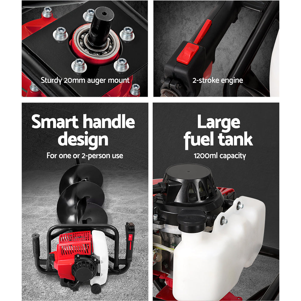 63CC Post Hole Digger 300mm Petrol Drill Extension Auger Bits