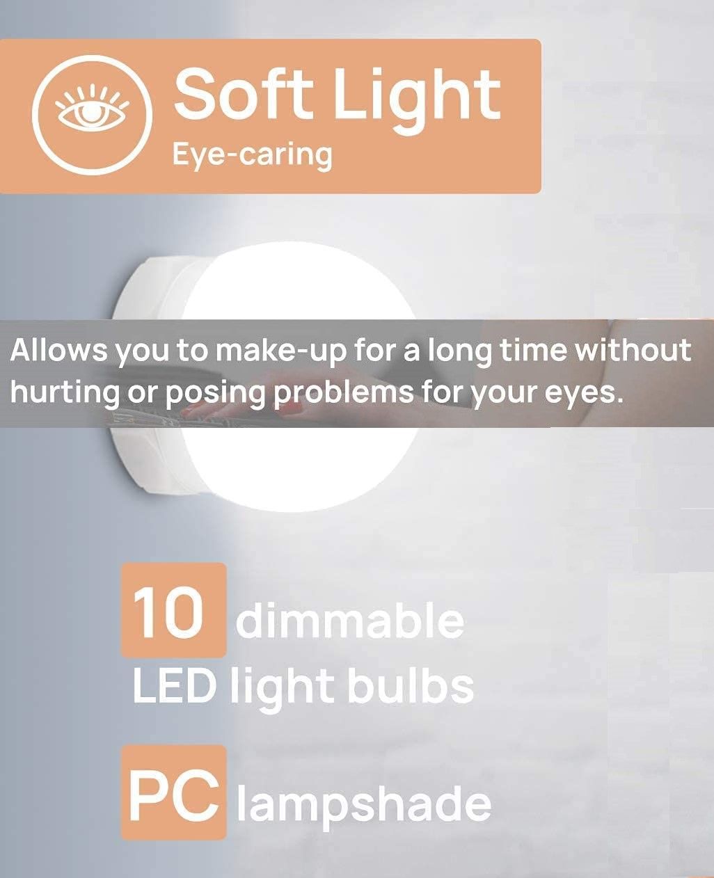 Hollywood Vanity Style LED Makeup Lights Mirror with 3 Color Modes Lights with 10 Dimmable Bulbs (Mirror Not Include)