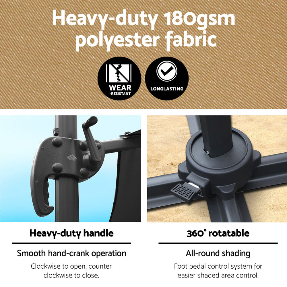 Soak up the sun, while staying cool under our Instahut side post umbrella. Its robust aluminium frame supports an octagonal UV50+ canopy, ideal for the peak of summer. Made of water-resistant and wear-resistant polyester, it stands up to all sunny adventures. A water-fillable, portable base ensures beach-to-backyard versatility, while the washable canopy ensures freshness. Sunshine and shade, harmoniously blended for your summer escapades. Note: Umbrella base not included.