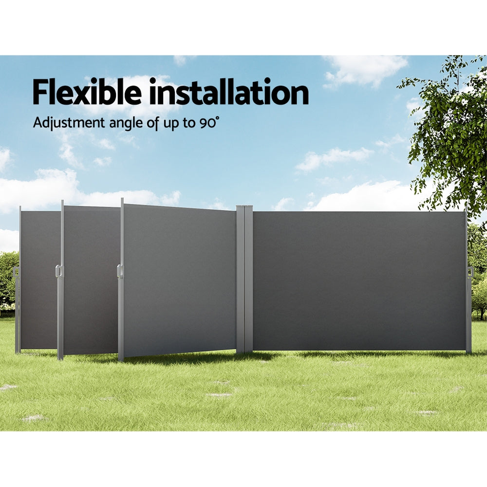 Made from UV-resistant and tear-resistant polyester with robust steel frame, our Instahut Retractable Double-sided Awning is perfect for outdoor application. It is excellent at blocking prevailing wind and low-lying sun, as well as providing additional privacy. It has a stable base and can be installed at flexible angles of up to 90 degree. The awning has a width of 6m and has an automatic roll-back function for easy keeping.