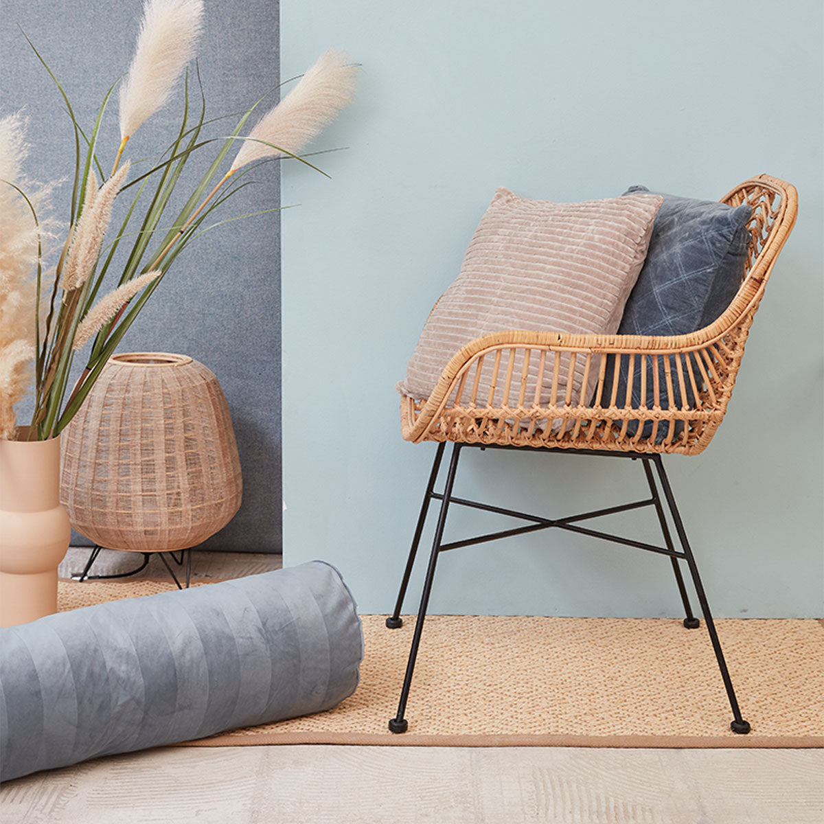 The KAAT Amsterdam Softy Stripe Blue Grey Oblong Neckroll Filled Cushion 22cm x 70cm is totally on-trend! The embossed velvet stripes give this oblong cushion a touch of elegance. Thanks to the solid colour, this decorative cushion is easy to combine.