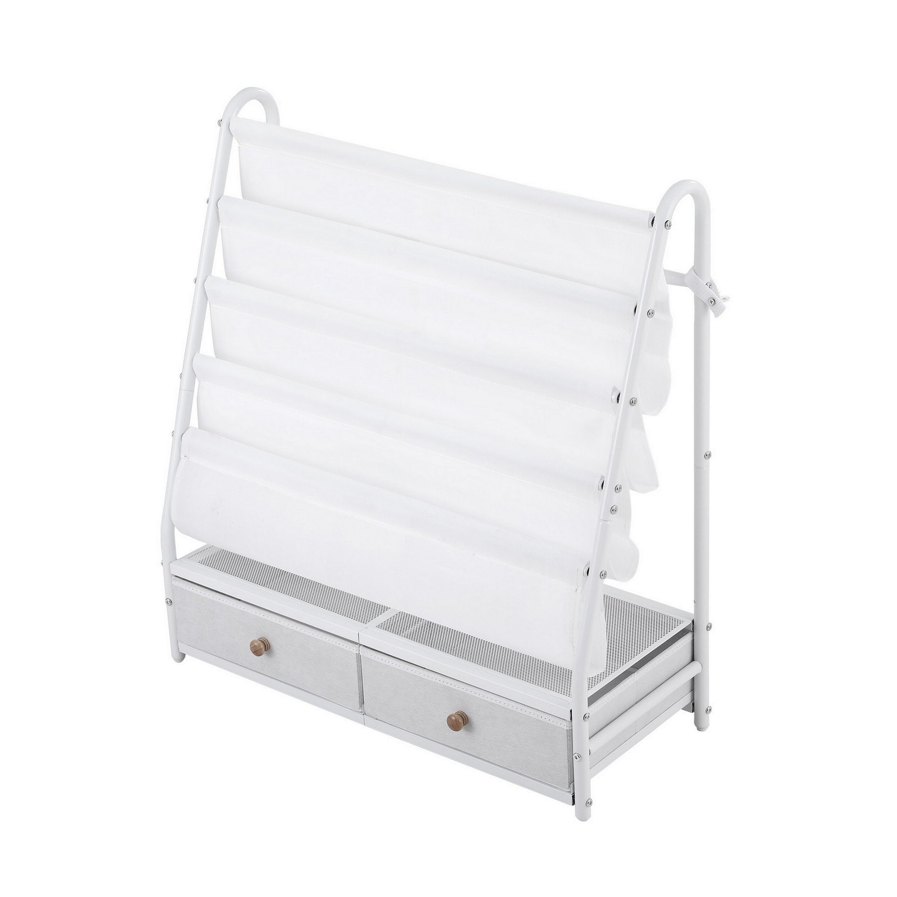 Safety is key, so this unit comes with attach-to-wall hardware to prevent tipping. Its compact size and clean white finish make it an ideal space-saving solution for nurseries, bedrooms, or playrooms.