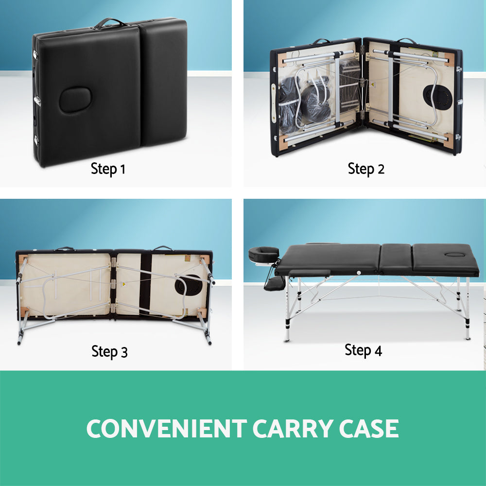 Portable Aluminium 3 Fold Massage Table Chair Bed Black 60cm