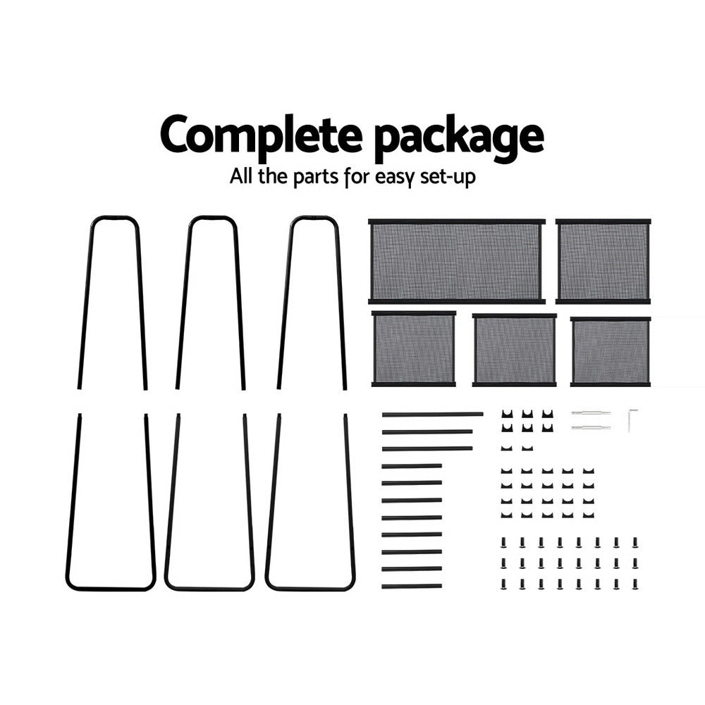 Need more clothing storage? Want a fast and easy option? Then look no further than our Metal Clothes Rack. The frame is made of sturdy powder-coated metal that can safely hold up your clothing and withstand robust use. The clothes rack has an anti-slip hanging bar and U-shaped base for extra stability so that your clothes do not end up on the floor. There are also five plastic storage shelves perfect for storing shoes, hats, folded clothes or other fashion items. The neutral black tone means the clothes rack will fit in with any d��cor and will look stylish even when left out in the open.