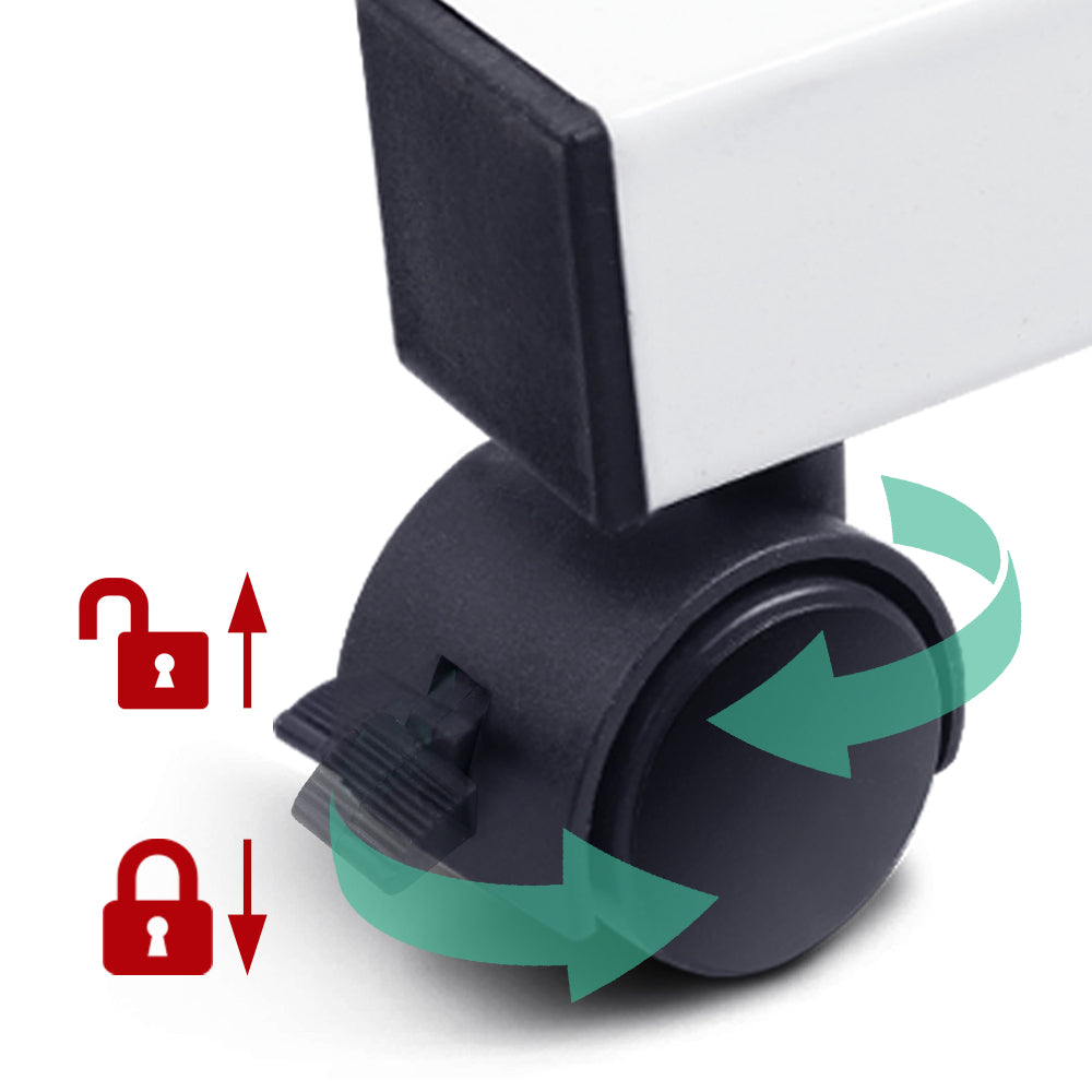 Sometimes you wish you have a ready desk at your beck and call. But moving your one desk is impractical. And that is where our Mobile Laptop Desk can help you explicitly. Designed to be strong and lightweight, our mobile laptop desk has ample desk area to work efficiently without feeling cluttered. The height is easily adjustable to your preference and the U-shape design fits in well with most furniture such as sofas and beds to get a comfortable sitting position. Better still, the desk top can now be tilted up to 3600 to suit your preferred use angle and also features an edge stopper to prevent things from falling off. The castor wheels rotate 360° and can be readily locked down in place. Or, if you like, remove the detachable wheels for a more permanent fixture. Not least, with its thick 17mm MDF board desk top and sturdy powder-coated U-shape steel frame, our mobile laptop desk is absolutely versatile to function as any type of table top.