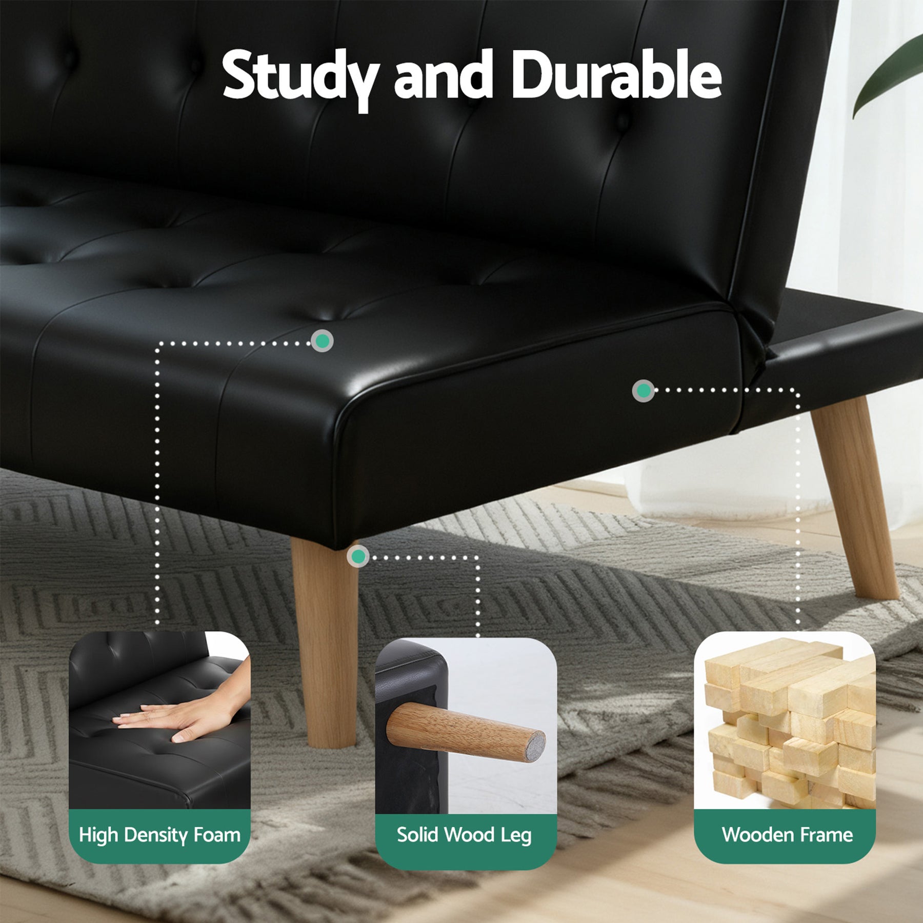 Solid rubber wood legs