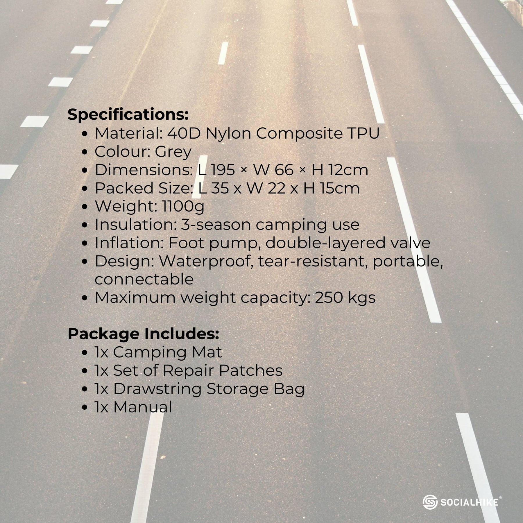 Social Hike Step-Inflating Camping Mattress makes sleeping comfortably outdoors easy! This inflatable sleeping pad is made from durable 40D nylon TPU, creating a lightweight, waterproof air mattress that inflates quickly by stepping.
