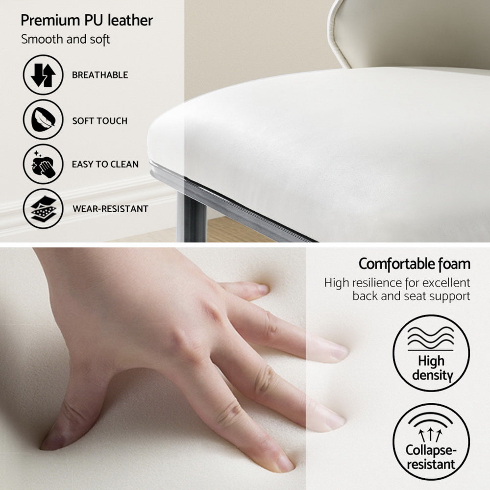 Wine, dine, and entertain guests with our meticulously designed Artiss Dining Chair. They make a gorgeous addition to any dining space and will make your guests envious of your gorgeous dining ambience. Not just for your dining room, these dining chairs are sure to make a statement in your study room, living room, and dressing room. Their versatility and ultra-modern design make them stand out. Incredibly stylish and sophisticated, our Artiss Dining Chair features a durable frame that ensures lasting quality and ultimate durability. It comes with solid steel legs with anti-slip foot pads for ultimate stability and to keep your floors scratch-free. The dining chairs flaunt plush PU leather seats with a contoured backrest that offers incredible comfort and support and allows you to dine comfortably. Our dining chairs can hold up to 150kg weight, and their reinforced steel fixings make them super stable and reliable. Our Artiss dining chairs are certainly a big bang for your buck. Bring home this gorgeous set of dining chairs without any hesitation.