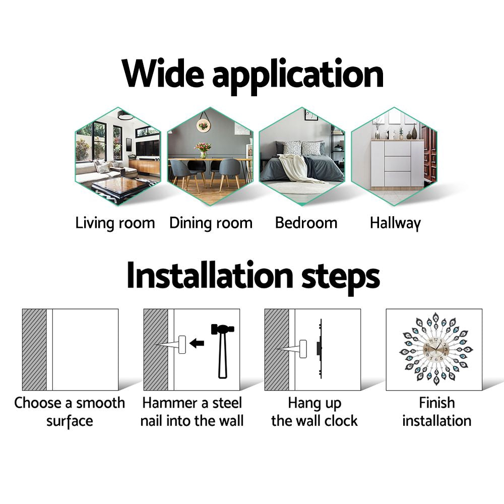 Add some elegant appeal to your home and keep time in style with ornate peacock-style Metal Wall Clock. The exquisite timepiece is inspired by Northern European influences and its large Arabic numerals make for an easy-to-read clock face with sophisticated aesthetics. The accurate time teller is easy to set up, requiring only one AA battery to get it moving (battery not included). Most importantly, our wall clock is crafted from quality eco-friendly and non-toxic materials, with even the hands being made from metal for longlasting durability. Place it in your living room, dining room, bedroom or even your office for fancy makeover.