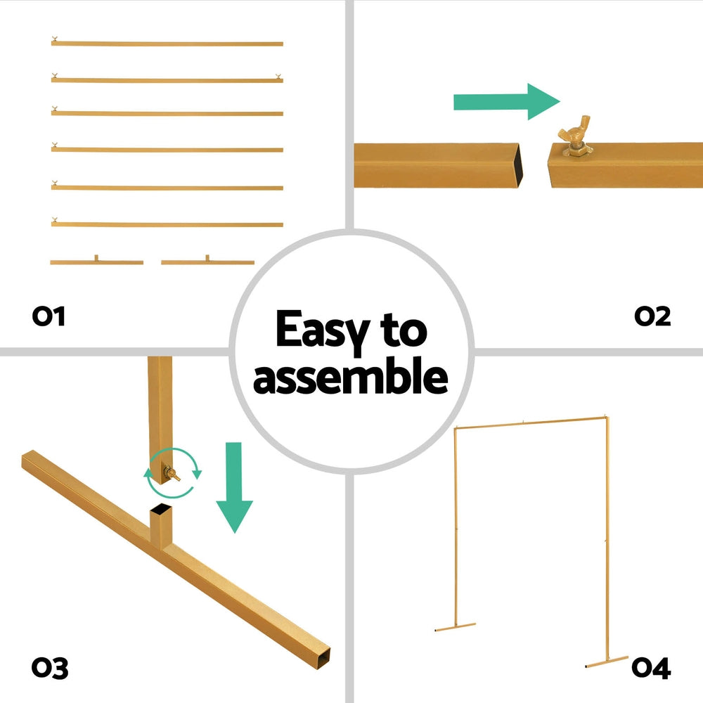 2M Backdrop Stand Wedding Background Decoration Party Flower Balloon Display Golden