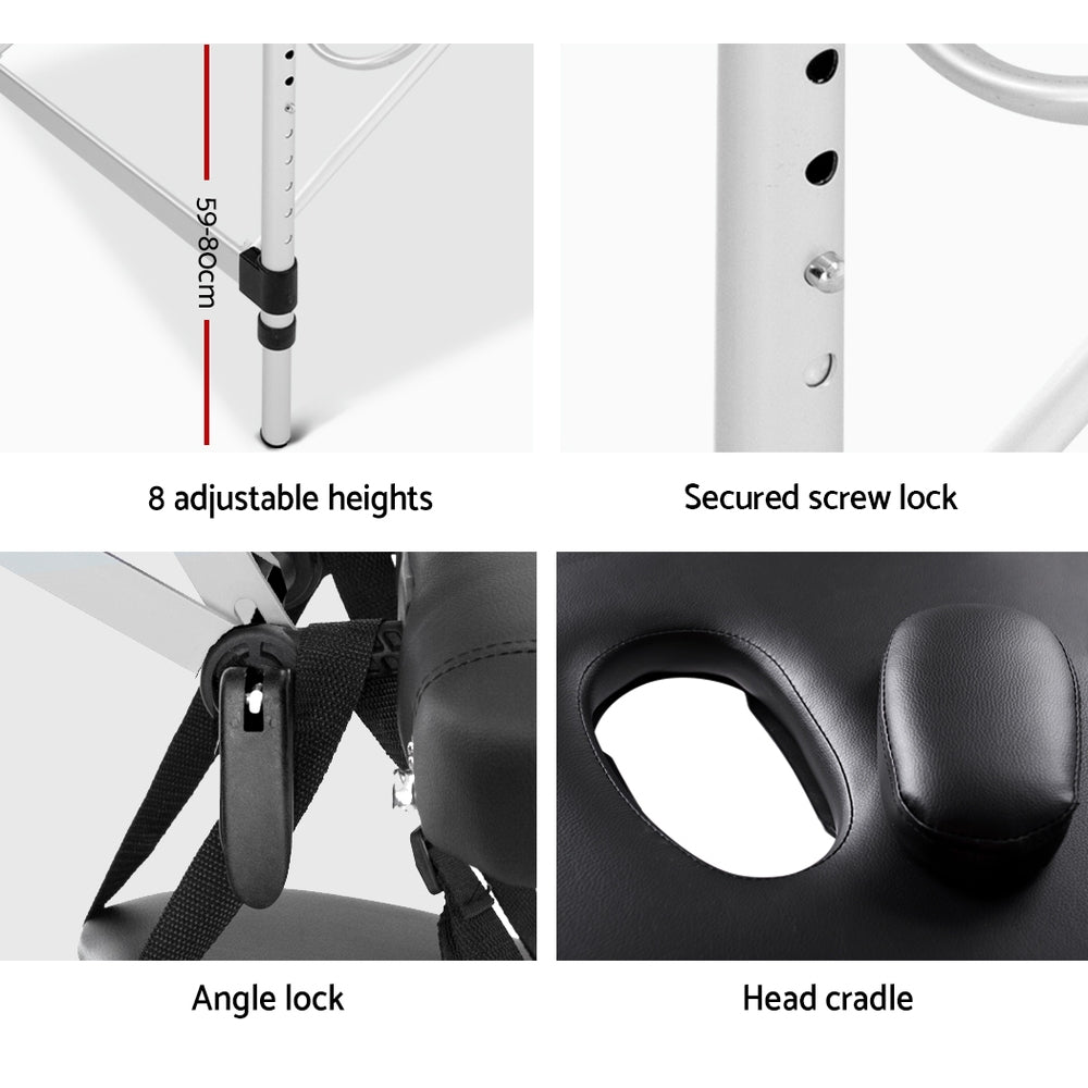 Massage Table 55cm Portable 2 Fold Aluminium Beauty Bed Black