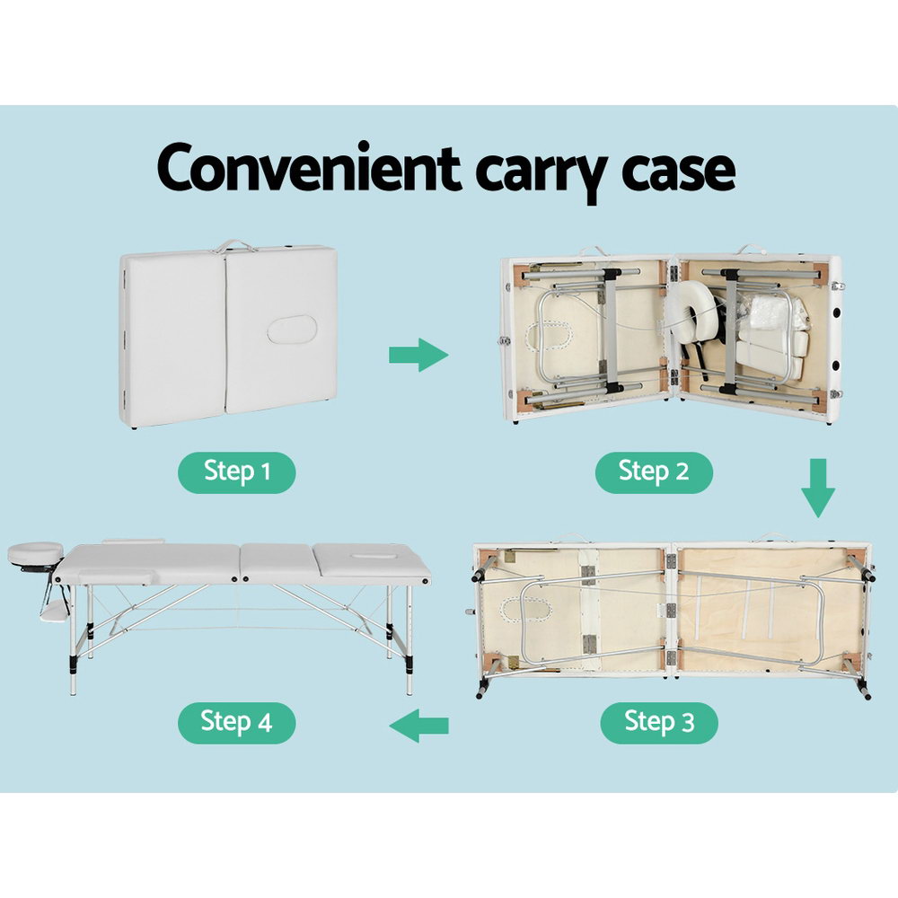 Massage Table 65cm Portable 3 Fold Aluminium Beauty Bed White